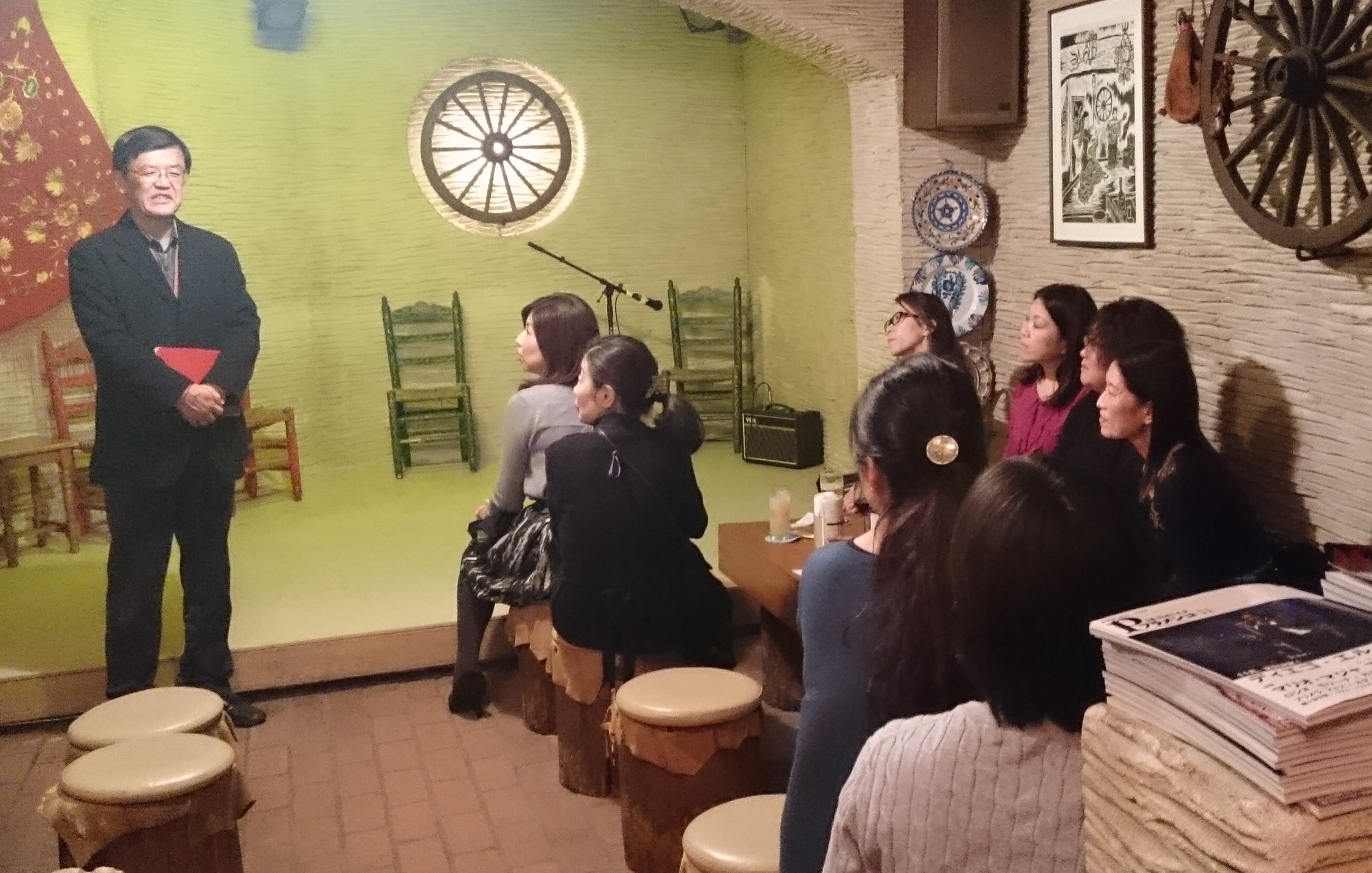 フラメンコ教室の生徒さんが多かったせいか、ほとんどが女性!とても華やかな説明会となりました!もちろんお店は超満員!スペシャルプログラムで大いに盛り上がり、オリンピックまで語学の勉強ってやっぱりいいですね!諦めてましたが、もう一度少しづつでも始めてみますとの嬉しい声がたくさん聞かれました!