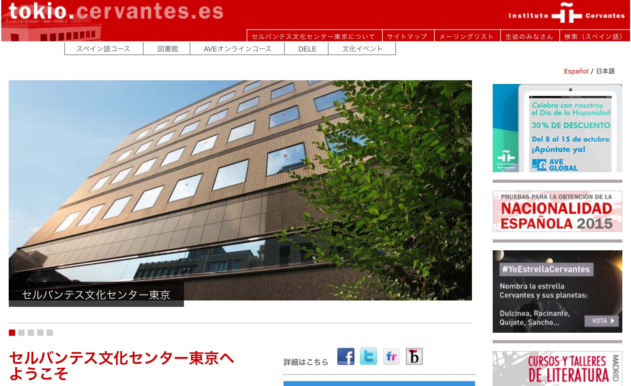 Se encuentra el Instituto Cervantes de Tokio no tan lejos desde la estación de JR Ichigaya. Es un centro cultural con el propósito de difundir el español y la cultura hispánica en Japón. Es algo como la Fundación Japón del gobierno japonés, pero se puede decir que hay gran diferencia en cuanto al sistema de la difusión del idioma japonés en el extranjero.